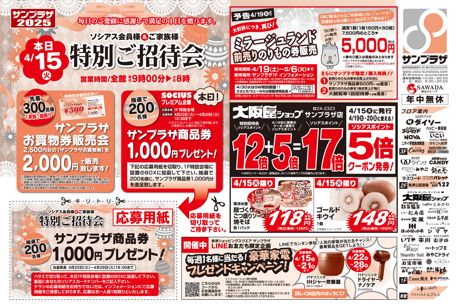 11/22(土)☆特別ご招待会!前々々日祭☆開催します 週末はサンプラザへ行こう!