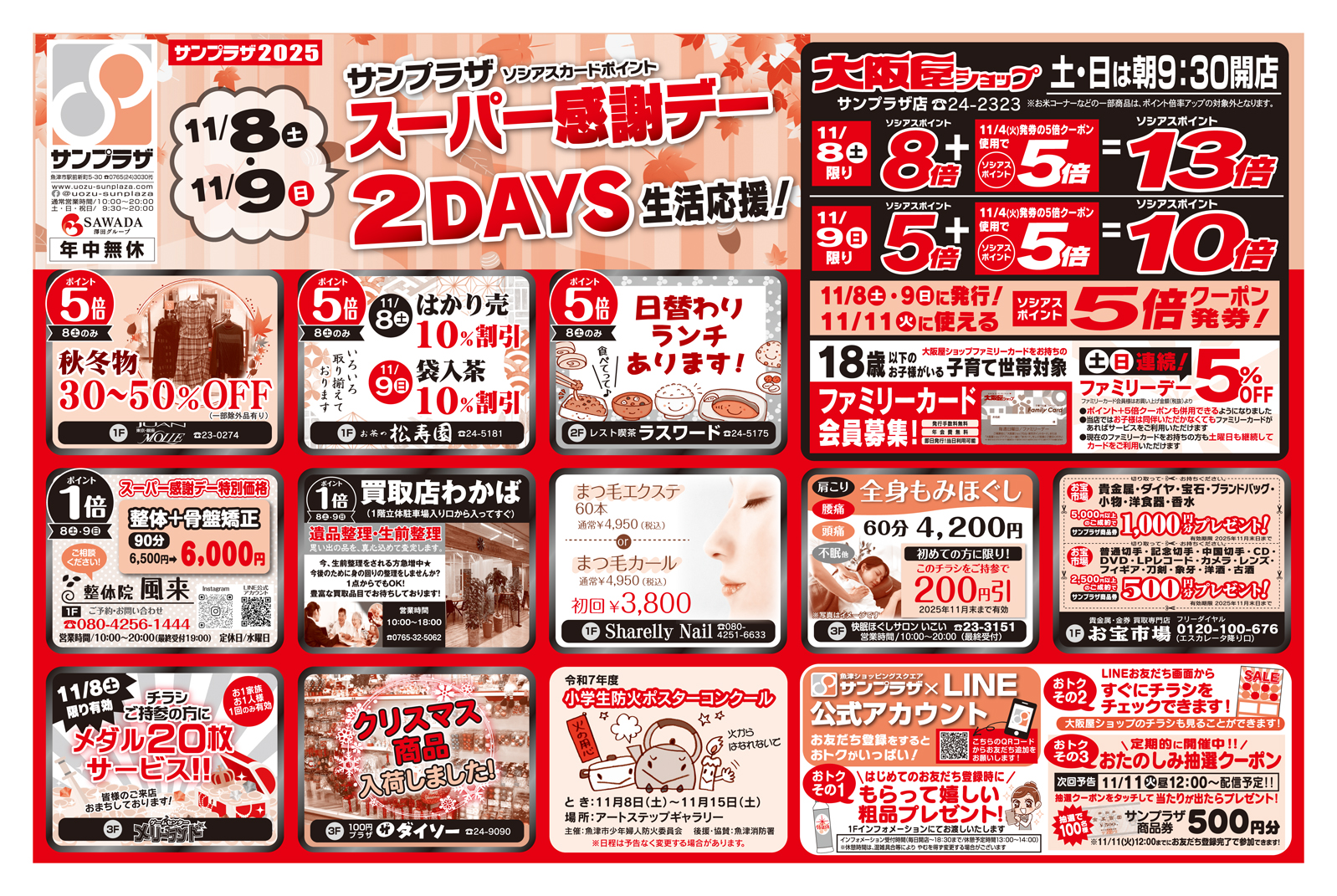 11/8(土)▶11/9(日)☆スペシャルサタデー2DAYS☆開催します!週末はサンプラザへ行こう!