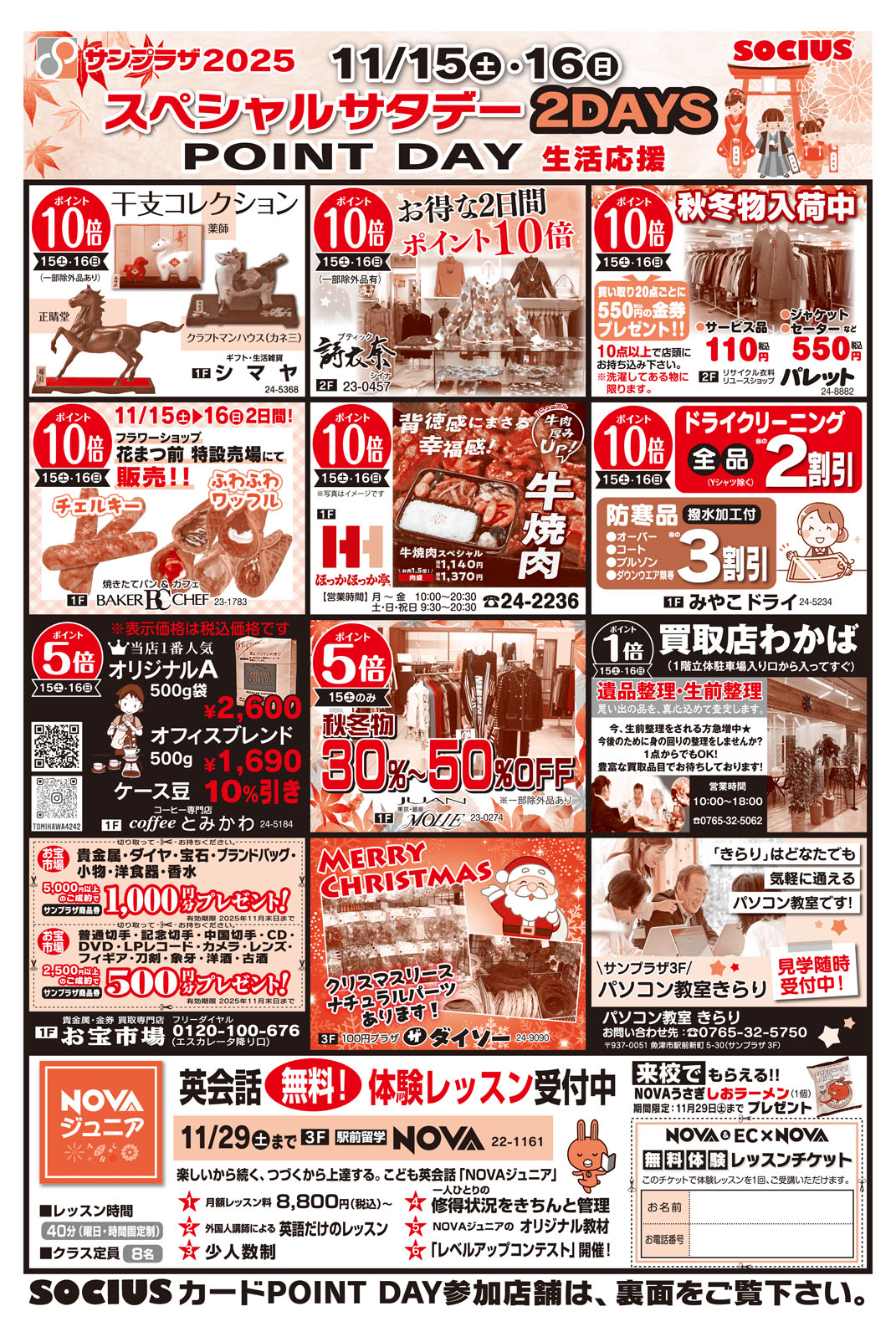 11/15(土)▶11/16(日)☆スペシャルサタデー2DAYS☆開催します!週末はサンプラザへ行こう!