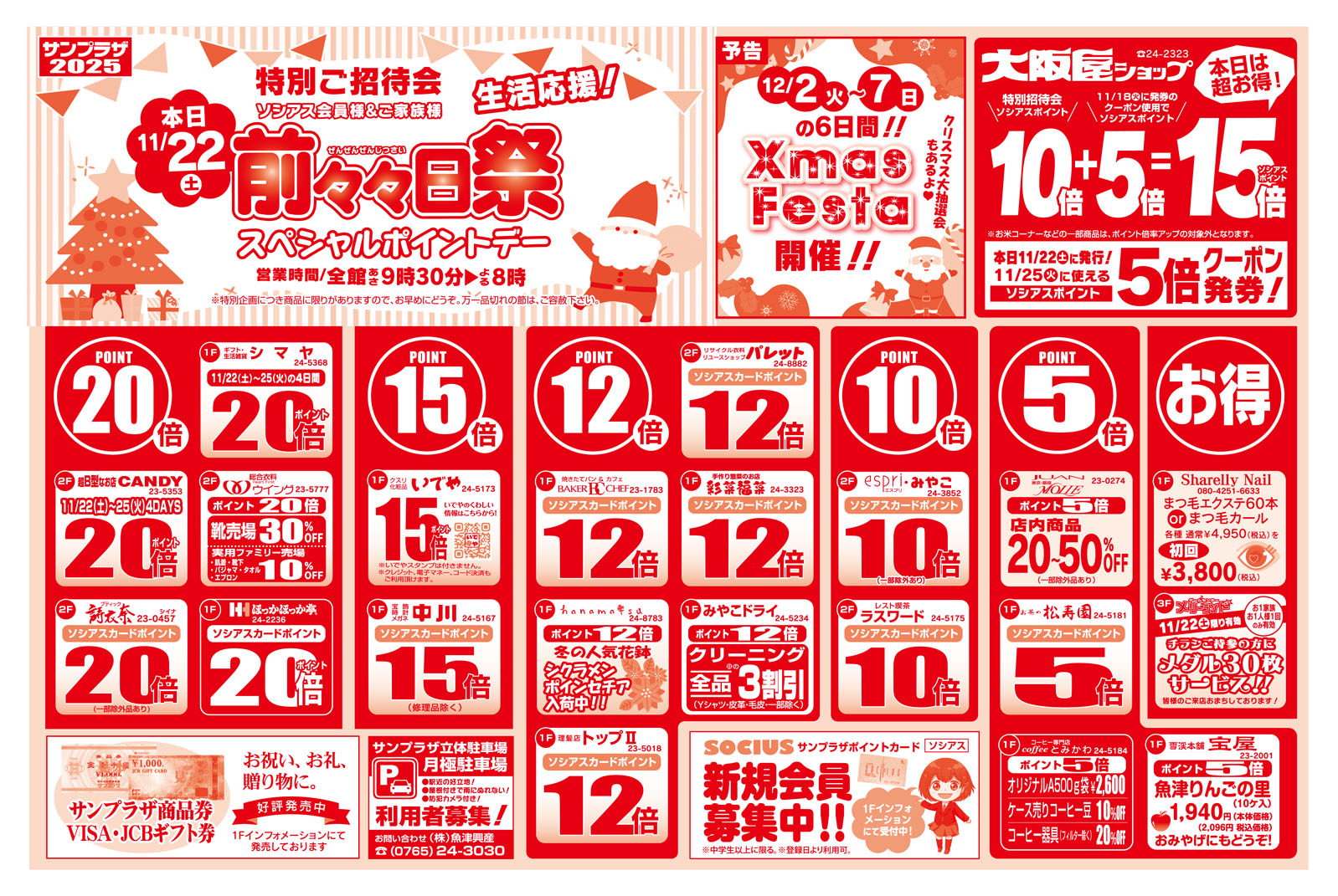 11/22(土)☆特別ご招待会!前々々日祭☆開催します 週末はサンプラザへ行こう!
