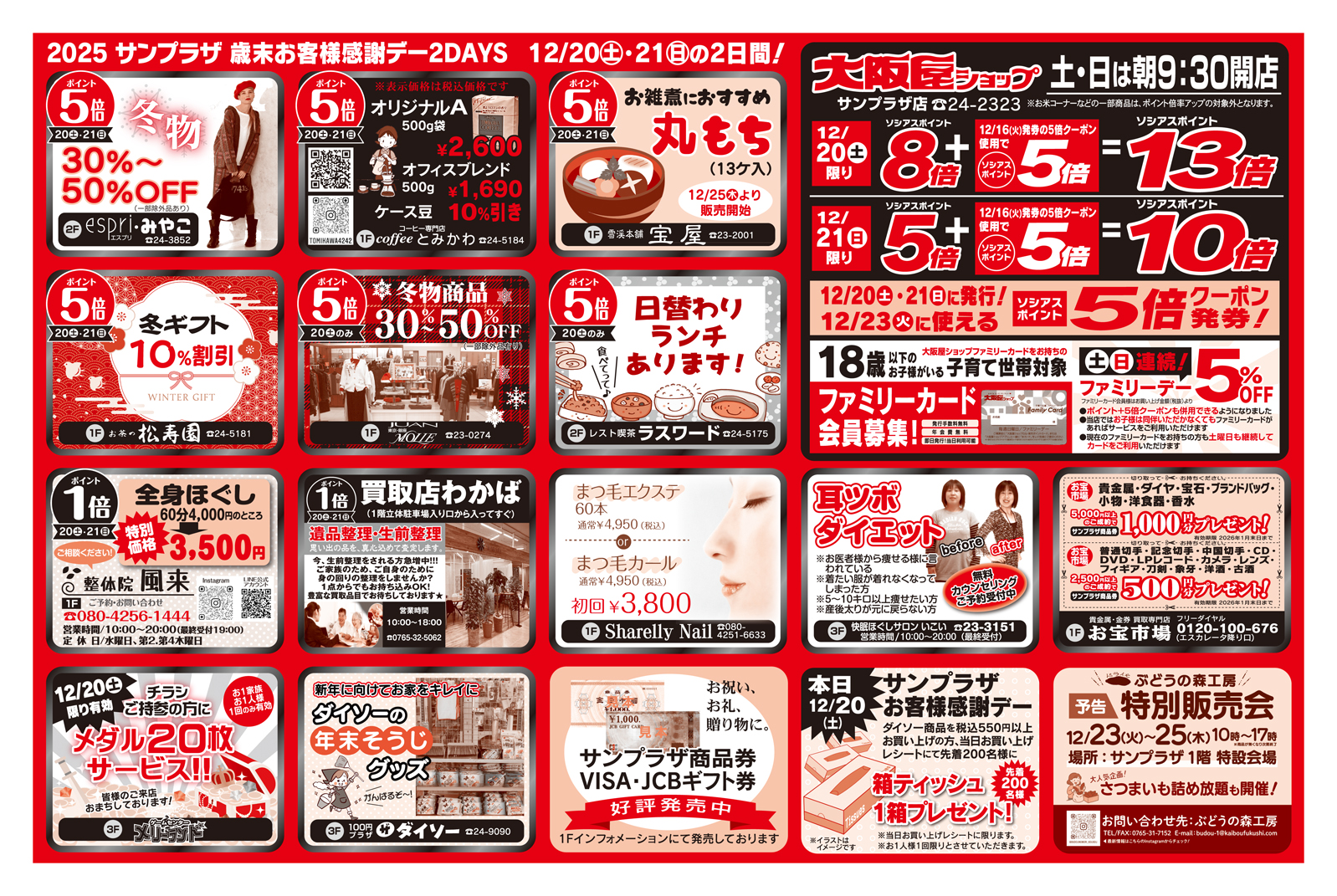 12/20(土)▶12/21(日)☆歳末お客感謝デー2DAYS☆開催します!週末はサンプラザへ行こう!12/20(土)は今年最後のお買物券販売会開催します!