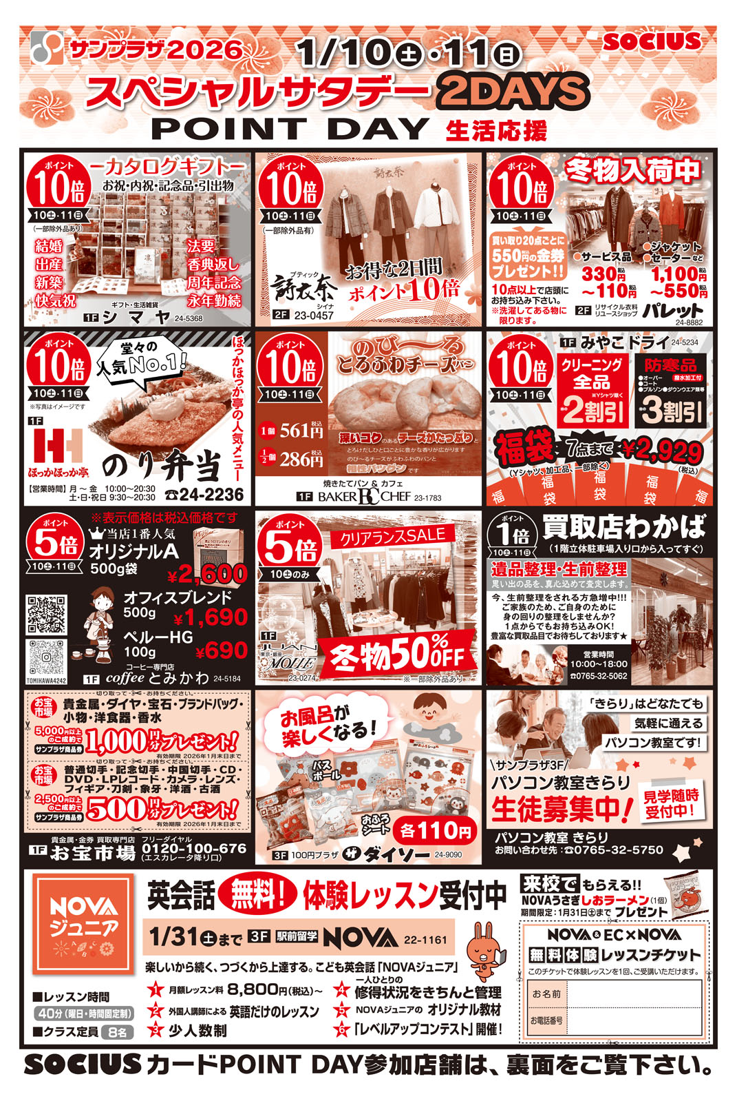 1/10(土)▶1/11(日)☆スペシャルサタデー2DAYS☆開催します!週末はサンプラザへ行こう!