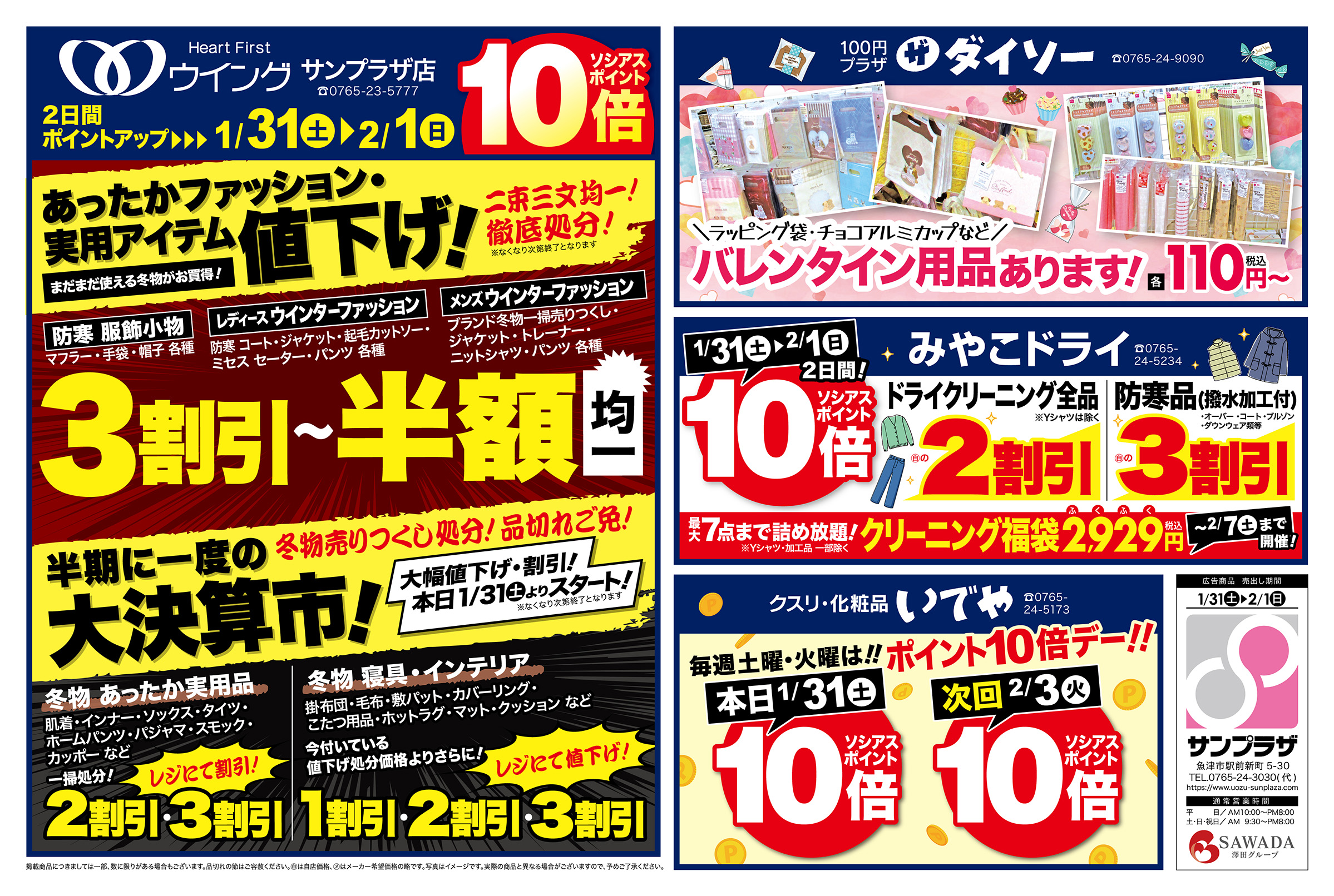 1/31(土)▶2/1(日)☆生活応援2DAYスペシャル☆開催します!週末はサンプラザへ行こう!