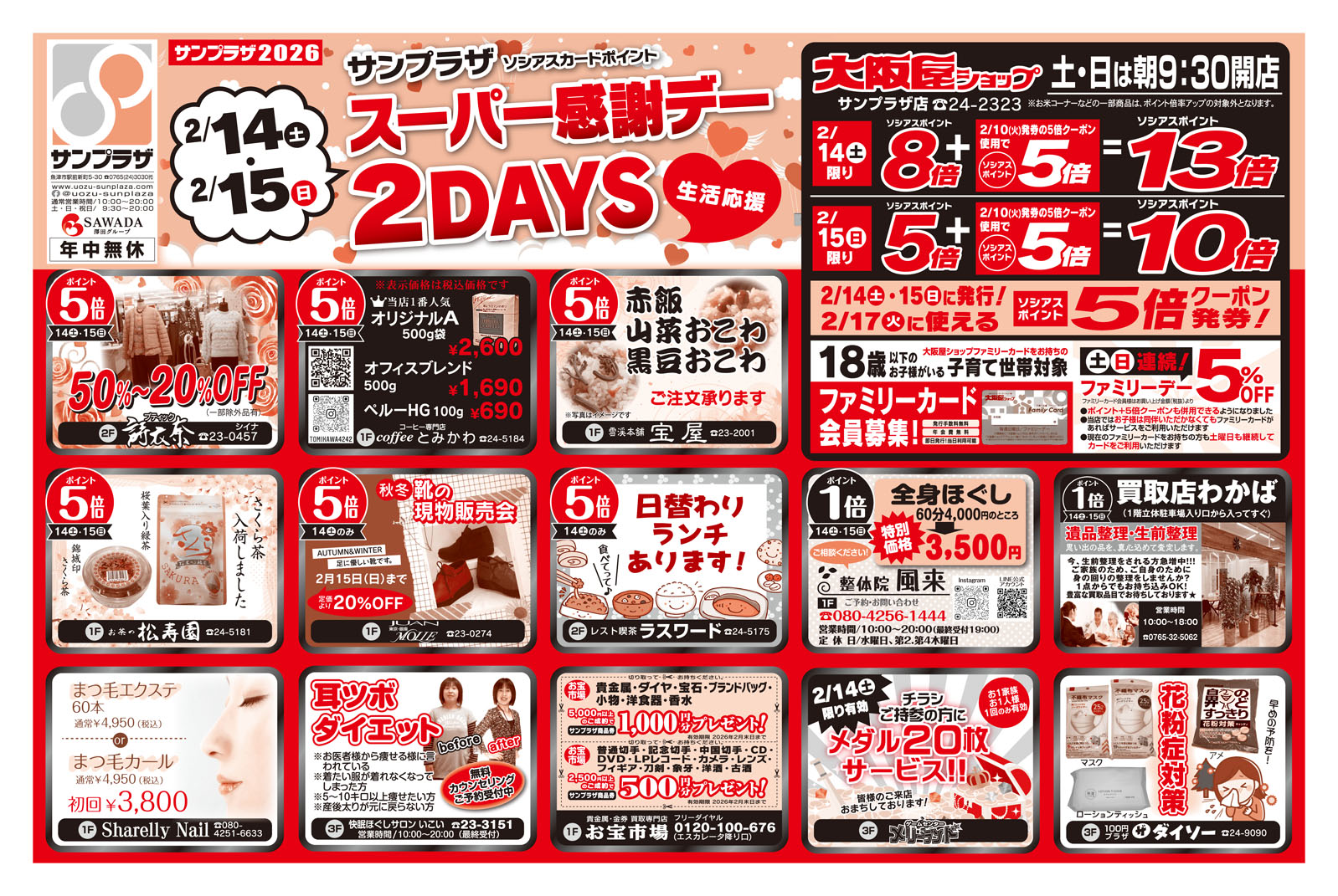 2/14(土)▶2/15(日)☆スーパー感謝デー2DAYS☆開催します!週末はサンプラザへ行こう!