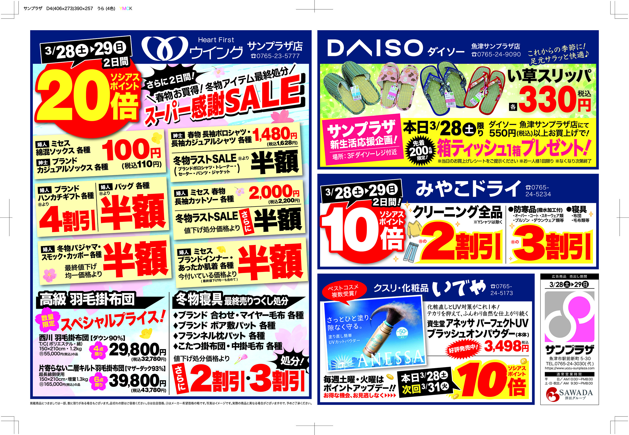 3/24(火)☆春の大サンプラザ祭 第2弾☆開催します!明日はサンプラザ祭の最終日!超お得な1日をお届けします。お買物券販売会も行います!