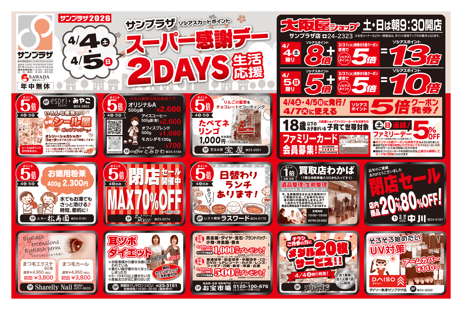 4/4(土)▶4/5(日)☆スーパー感謝デー2DAYS☆開催します!週末はサンプラザへ行こう!