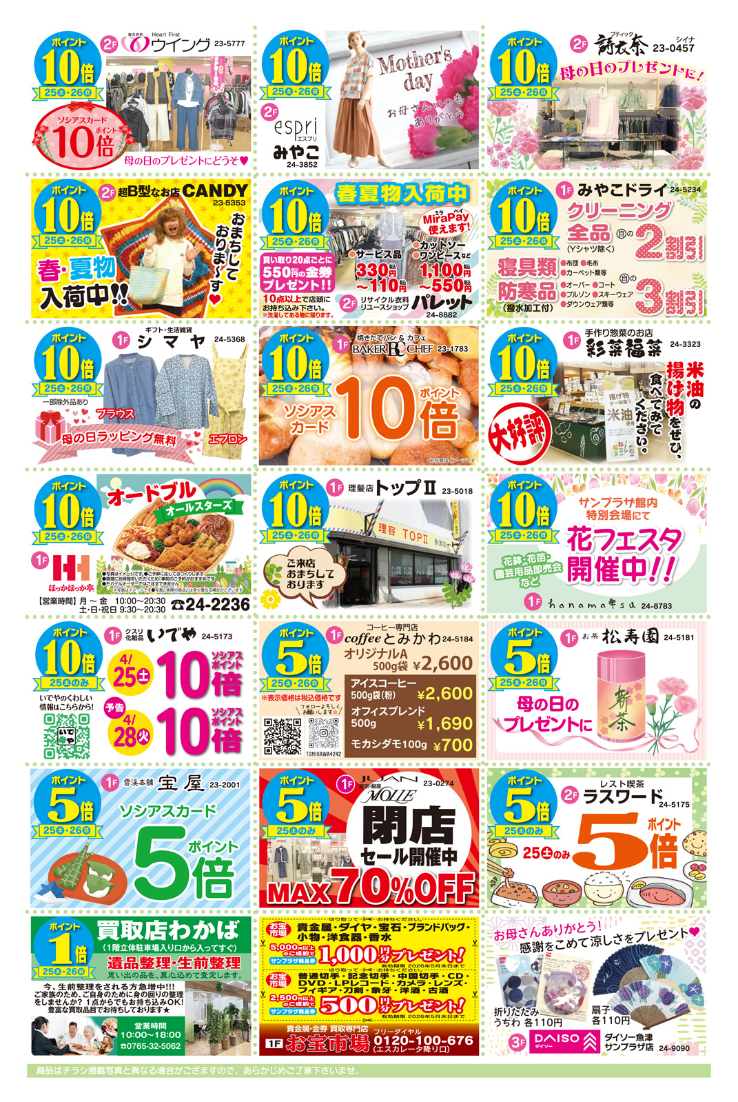 4/25(土)▶4/26(日)☆花フェスタ&母の日プレゼント☆開催します!週末はサンプラザへ行こう!