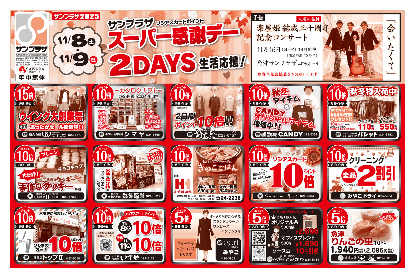 11/8(土)▶11/9(日)☆スペシャルサタデー2DAYS☆開催します!週末はサンプラザへ行こう!