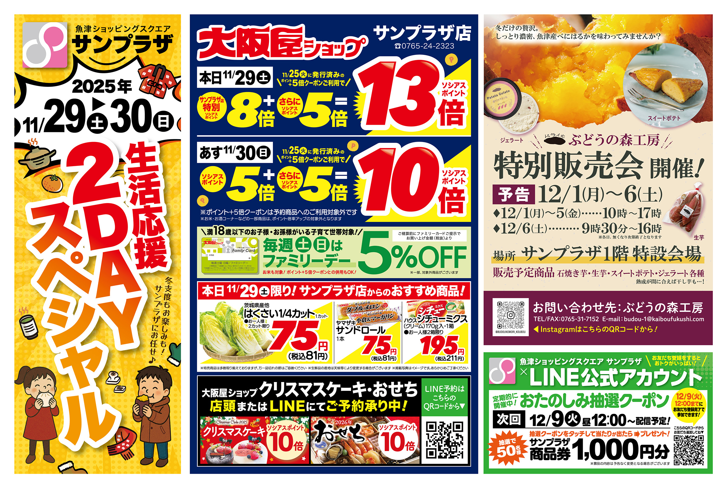 11/29(土)▶11/30(日)☆生活応援2DAYスペシャル☆開催します!週末はサンプラザへ行こう!