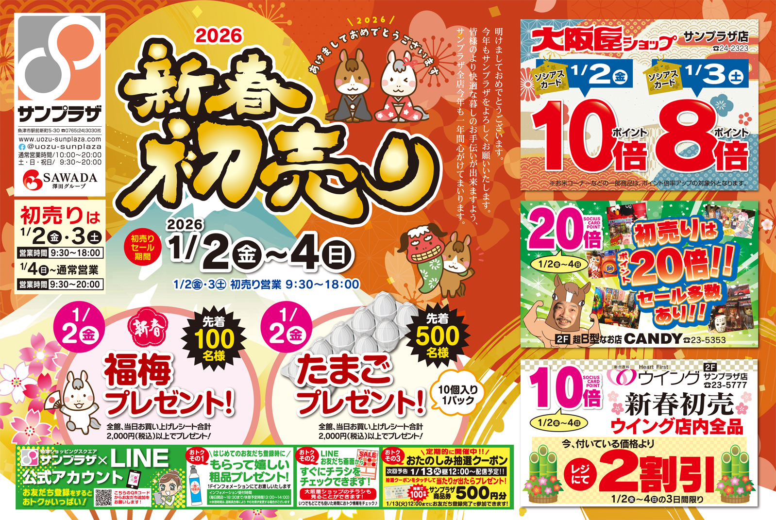 1/2(金)▶1/4(日)☆2026サンプラザ新春初売り☆開催します!初売りはサンプラザへ行こう!