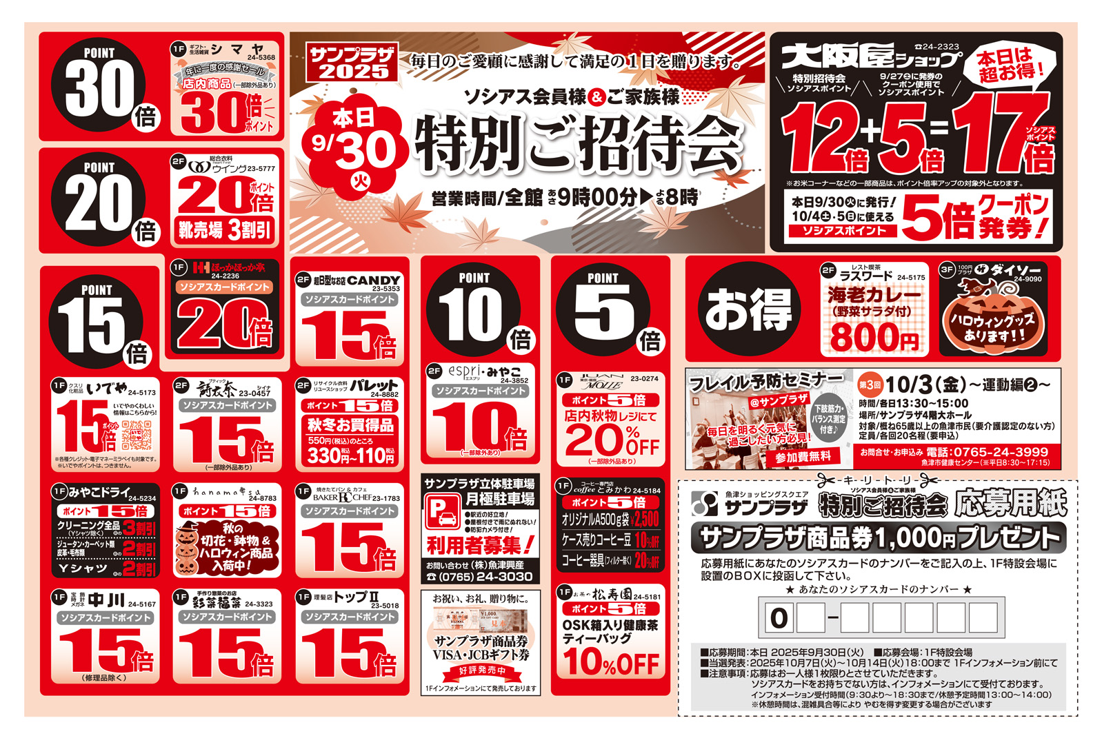 9/30(火)☆ソシアス会員様&ご家族様 特別ご招待会☆開催します!先着300名様 お買物券販売会実施します!
